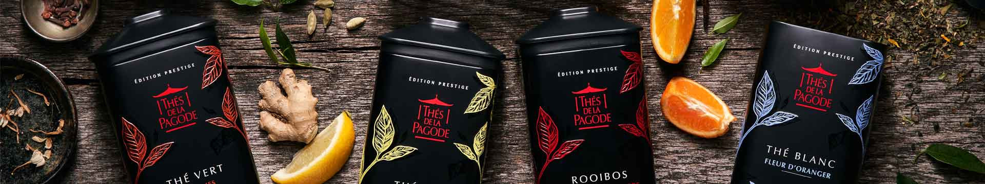 Die speziell für Thés de la Pagode entworfenen Teedosen der Prestige-Edition „Grands Thés des Gourmets" sind eine Hommage an die poetische Eleganz asiatischer Pagoden. Ihr raffiniertes Design macht sie zu einer originellen Geschenkidee, über die sich Freunde oder Familienangehörige freuen und die sie gern behalten werden. Sie sorgen außerdem für eine optimale Lagerung des Tees und bewahren länger das Aroma der Teeblätter.