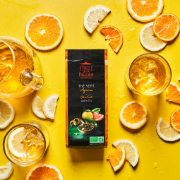 Ein verführerischer Grüntee mit kleinen, dünnen und regelmäßigen Blättern, die ein süßes und raffiniertes Getränk ergeben. Die Blätter dieses Grüntees werden mit den natürlichen Essenzen der Orange, der Zitrone und der Bergamotte aromatisiert. Das ergibt ein Getränk von zartem und frischem Geschmack.