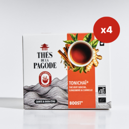 Chinesischer Bio-Sencha-Grüntee (63 %), Bio-Ingwer (19 %), Bio-Cassia-Zimt (8 %), Bio-Kardamom (6 %), milde Bio-Minze (4 %)