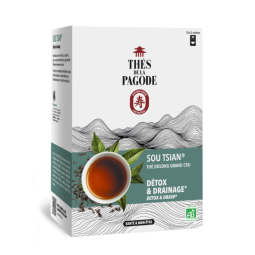 Today, Thés de la Pagode brings you all the beneficial properties of Sou Tsian oolong tea. This tea is grown according to ancestral methods in the preserved tea gardens of Fujian. Featuring subtle woody chestnut, hazelnut and honey notes, it can be enjoyed throughout the day. The draining properties of tea make it an excellent ally for weight loss and well-being as part of a healthy balanced diet.