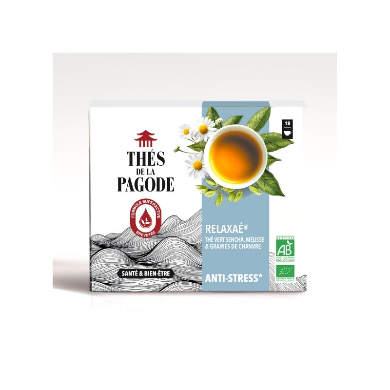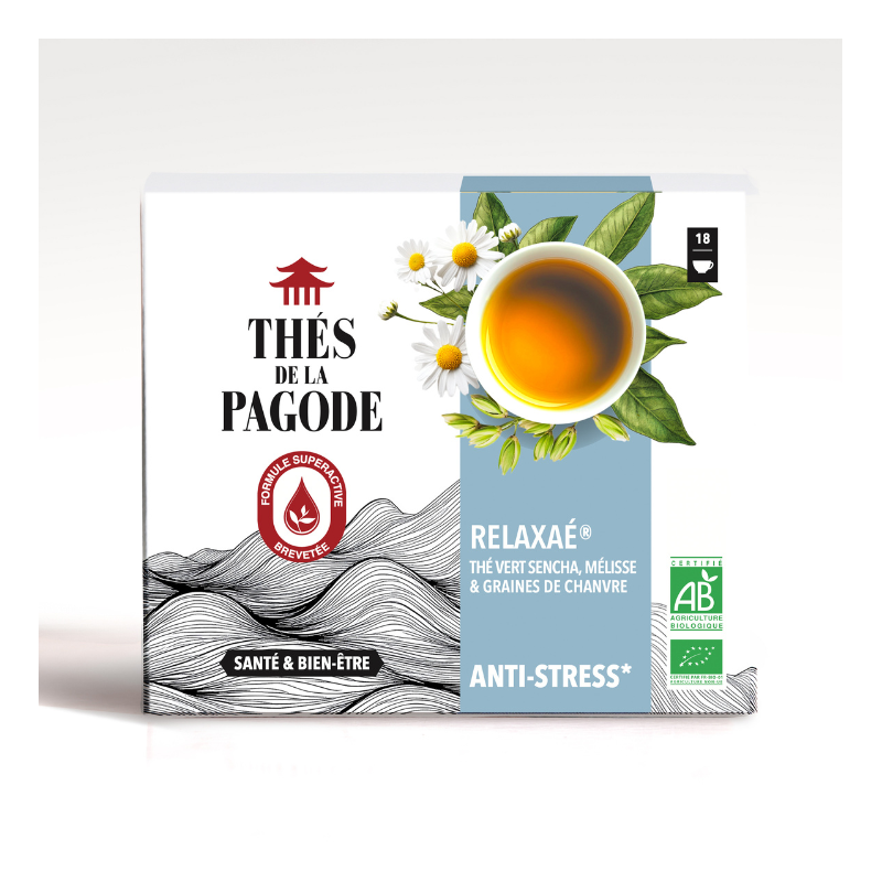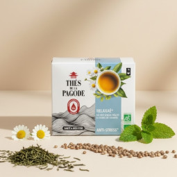 Relaxaé® is your ideal companion in reducing stress, nervousness and tension. This Sencha green tea is combined with three plants known for their benefits to the nervous system: lemon balm, chamomile and hemp.