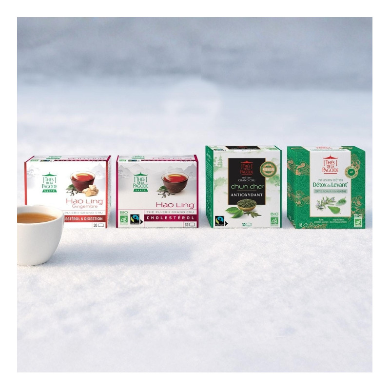 1 boîte de 30 infusettes. Un thé emblématique issu de la tradition chinoise, reconnu pour accompagner l’équilibre lipidique. - Thé Hao Ling Gingembre :Digestion