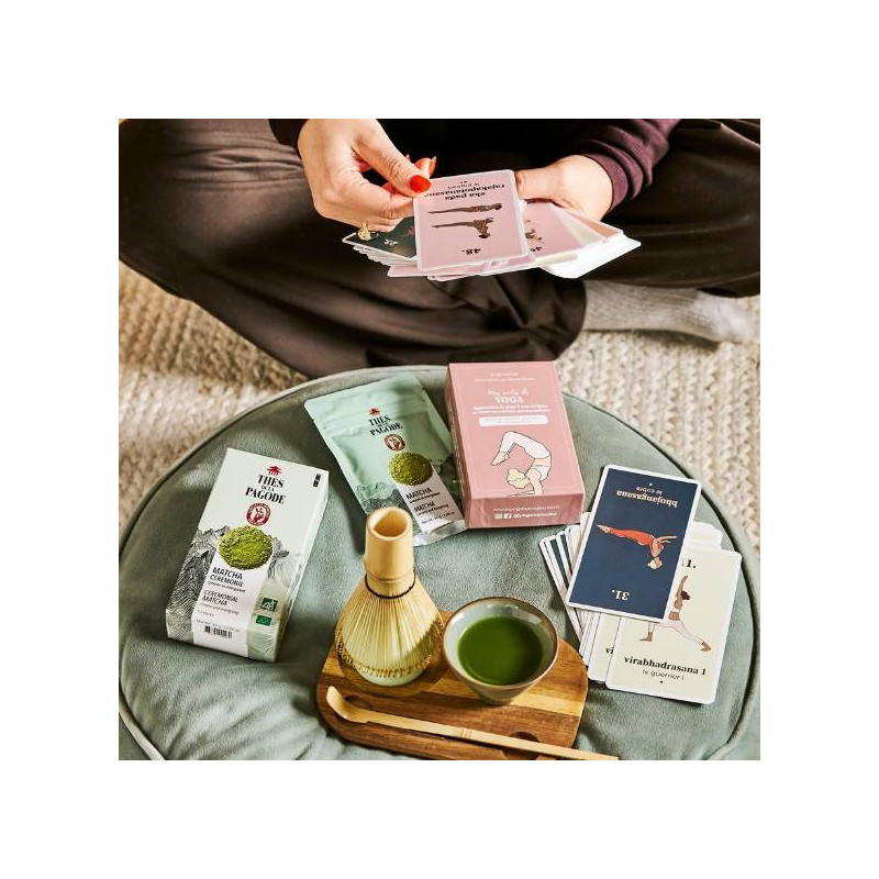 Offrez-vous une parenthèse de sérénité et de vitalité grâce à notre collaboration exclusive entre nos matcha bio du Japon et le jeu de cartes de yoga dynamique YOGASANA.