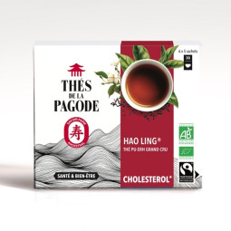 Hao Ling ® est un assemblage de 3 thés grands crus biologiques principalement de thé pu-erh et de thé vert qui lui confère une richesse en EGCG (épigallocatéchine gallate), une catéchine qui contribue au maintien d’un taux de bon cholestérol ayant une action protectrice sur les artères.