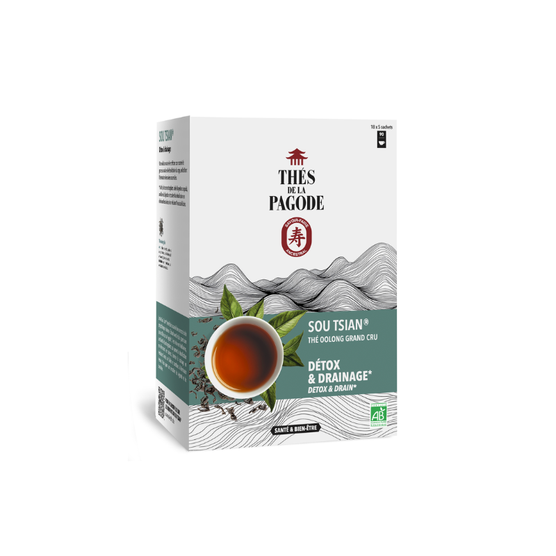 Aujourd’hui, les Thés de la Pagode vous restituent intactes les vertus du thé wulong Sou Tsian. Il est cultivé selon des méthodes ancestrales dans des jardins préservés du Fujian. Ce thé aux subtiles notes boisées de châtaigne, noisette et miel peut être consommé toute la journée. Les vertus drainantes et détoxifiantes du thé en font un excellent allié minceur et bien-être dans le cadre d'une alimentation variée et équilibrée.